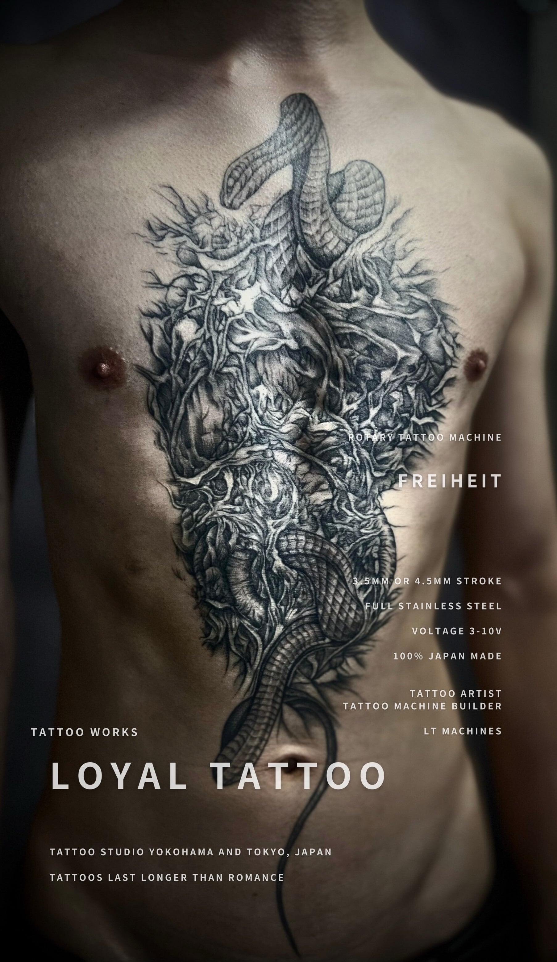 FREIHEITは、単なるタトゥーマシンという制約を突き抜けて、アーティストの創造力とスキルに羽ばたきを与える構造体。